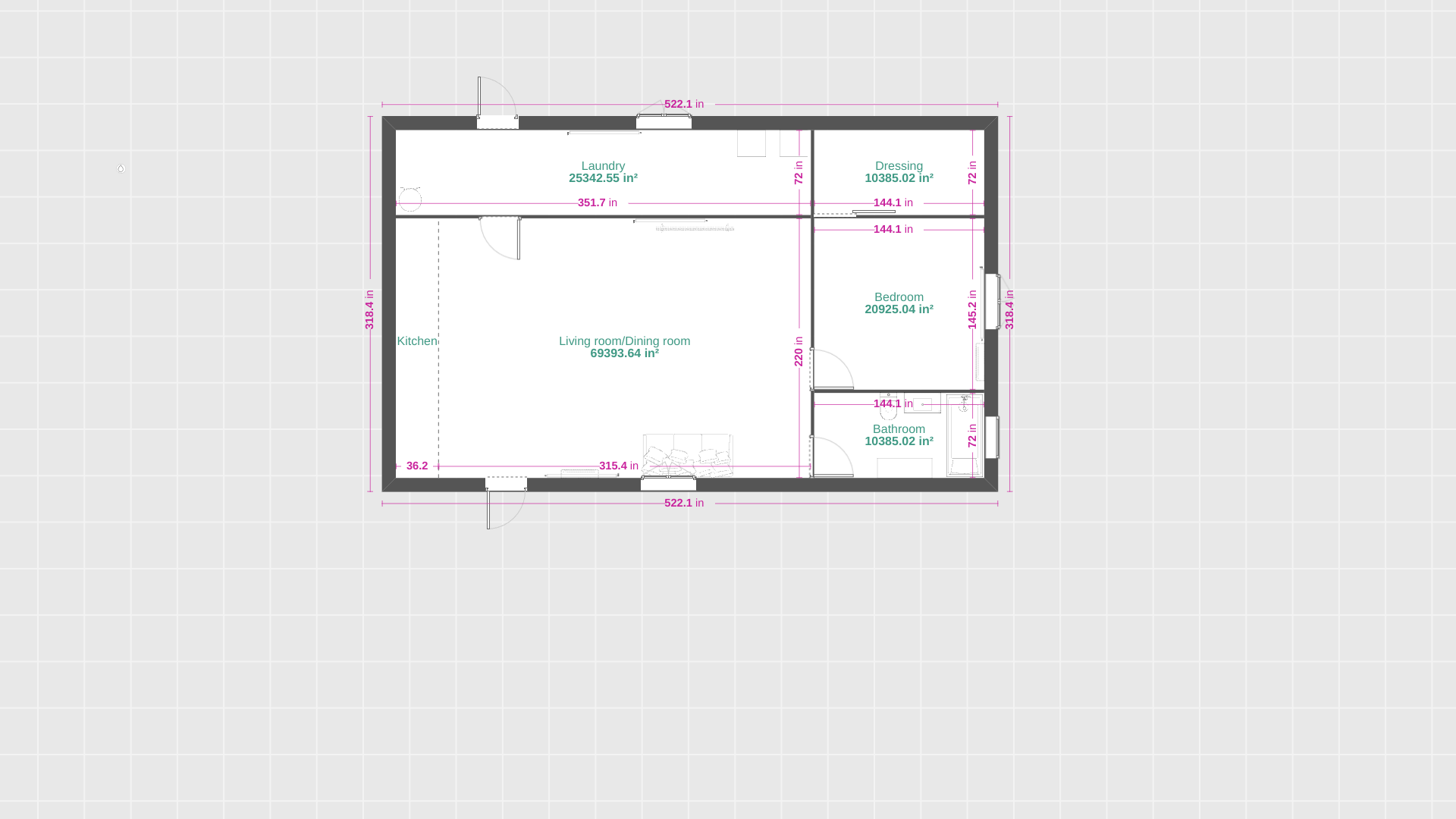 Initial 2d 1st floor view for ~1000 sqft